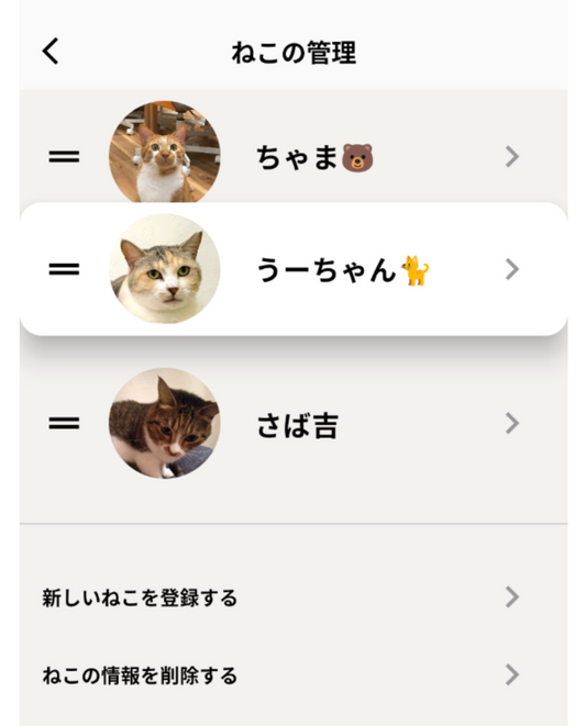 ねこの表示順変更、タイムライン切り替え保存ができるようになりました