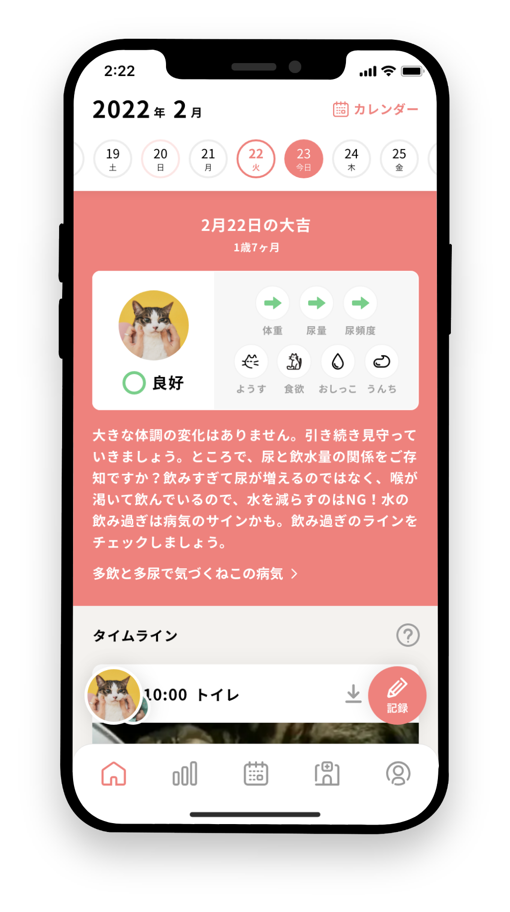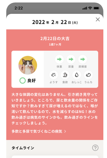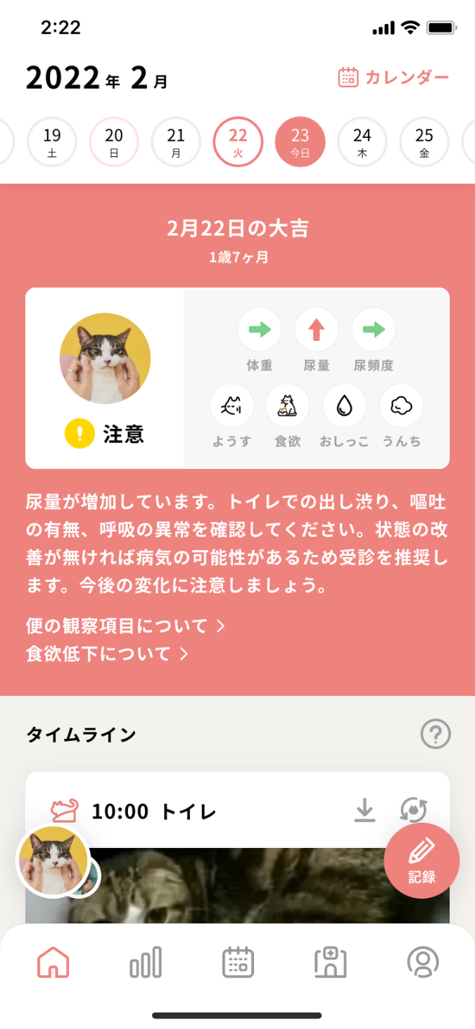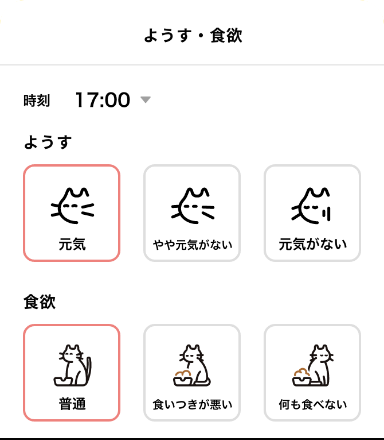ねこちゃんの「ようす・食欲」を 記録すると、より詳しい