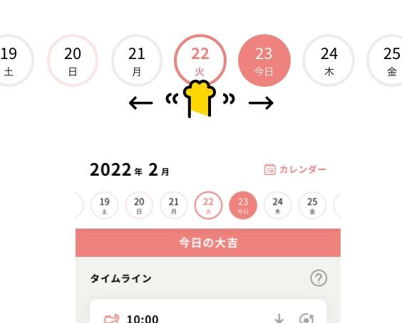 タイムライン、グラフ、カレンダー画面で