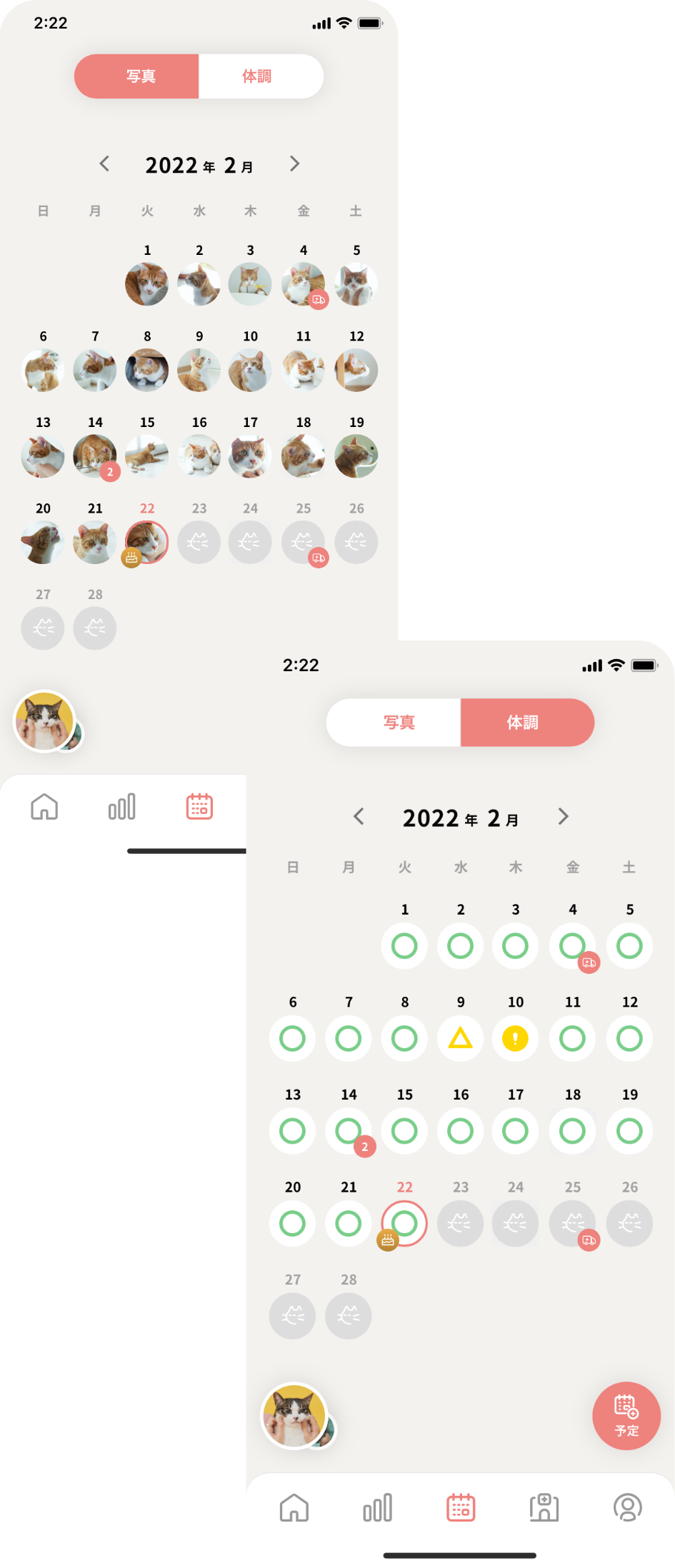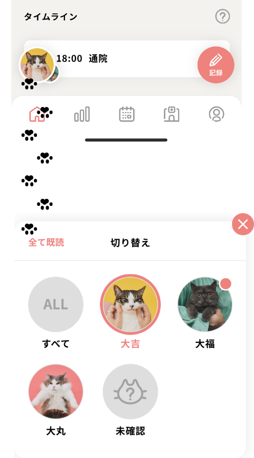 ねこちゃんごとに記録ができます。