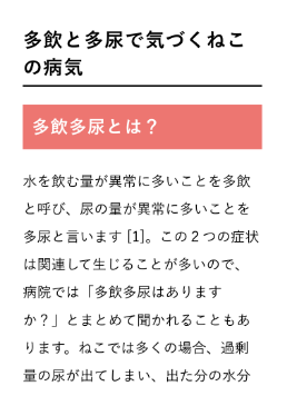 ねこの体調変化は、食事や水分摂取量などによる